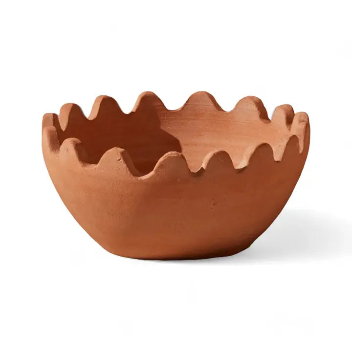 The Wavy Lines Terracotta Fruit Bowls are crafted by artisans in Sabana Grande Honduras. A sculptural piece crafted sustainably and ethically by skilled craftsmen. Each piece is unique will have slight variations in dimensions and size due to its unique process.